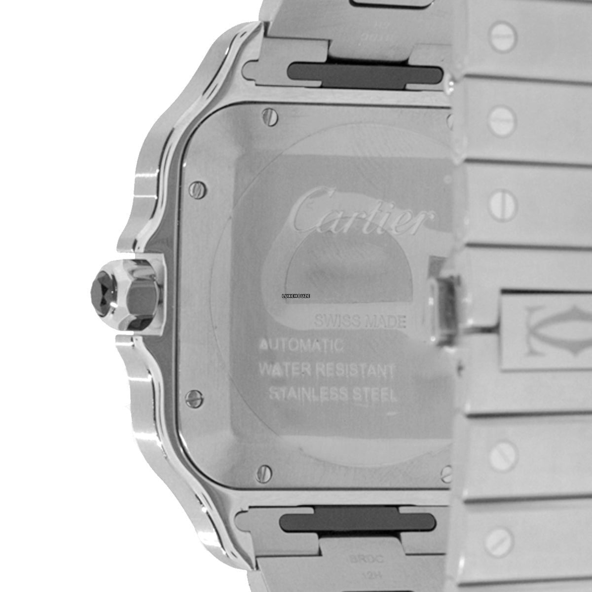 The Cartier Santos Large Model WSSA0037 Grey is crafted in a 47.5 x 39.8 mm case size in steel with an ADLC bezel.